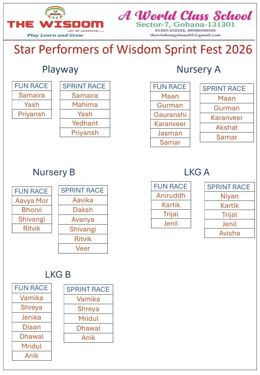 Grade 5 – Rising Stars Download Attachment || Grade 4 – Rising Stars Download Attachment || Grade 3 – Rising Stars Download Attachment || Grade 2 – Rising Stars Download Attachment || Grade 1 – Rising Stars Download Attachment || Prep – Rising Stars Download Attachment || LKG B – Rising Stars Download Attachment || LKG A – Rising Stars Download Attachment || Nursery B – Rising Stars Download Attachment || 01 Jan 1900 Nursery A- Rising Stars Download Attachment || 22 Mar 2026 Playway - Rising Stars Download Attachment || Star Performers – Wisdom Sprint Fest 2026 Download Attachment || Pre-Primary Annual Sports Day 2026 Download Attachment || Term 3 Grade 1 Datesheet-cum-Syllabus Download Attachment || Term 3 Grade 5 Datesheet-cum-Syllabus Download Attachment || Term 3 Grade 4 Datesheet-cum-Syllabus Download Attachment || Term 3 Grade 3 Datesheet-cum-Syllabus Download Attachment || Term 3 Grade 2 Datesheet-cum-Syllabus Download Attachment || Term 3 Prep Datesheet-cum-Syllabus Download Attachment || Term 3 Nursery Datesheet-cum-Syllabus Download Attachment || Term 3 LKG Datesheet-cum-Syllabus Download Attachment ||